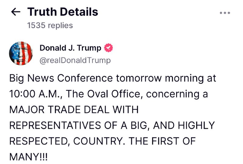US-Präsident Donald #Trump will am Donnerstag nach übereinstimmenden Medienberichten den Abschluss eines Handelsabkommens mit #Großbritannien bekanntgeben. Trump erklärte auf Truth Social, um 16.00 Uhr Mitteleuropäischer Zeit ein erstes von vielen kommenden Vertragswerken vorzustellen. Der Partner sei ein „großes und hochgeschätztes Land“.
