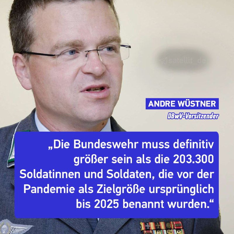 Der Vorsitzende des Deutschen Bundeswehrverbandes, Andre #Wüstner, hält eine Aufstockung der #Bundeswehr auf bis zu 260.000 Soldaten für nötig, um an die Anforderungen der Nato angepasst werden zu können. Er gehe nach eigenen Worten davon aus, dass Deutschland zwischen 40.000 und 60.000 Soldaten zusätzlich benötige.