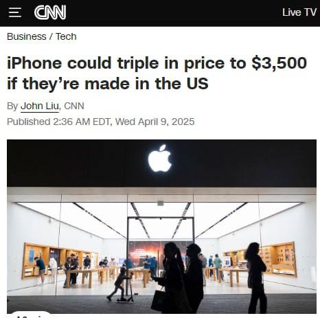 CNN: Käufer in den USA denken wahrscheinlich nicht daran, dass der Preis für das iPhone auf bis zu 3500 $ steigen könnte, wenn die Produktion in die USA verlagert wird. Präsident Donald Trump, der die Einführung beispielloser globaler Zölle angekündigt hat, behauptet, dass dies Millionen von Arbeitsplätzen nach Amerika bringen wird. Experten halten diese Idee jedoch für ein „Märchen“. Das Ökosystem der iPhone-Produktion konzentriert sich in Asien: Chips werden in Taiwan hergestellt, Bildschirme in Südkorea, und die Endmontage erfolgt in China (90 % der Geräte). Der Wiederaufbau dieser Infrastruktur in den USA würde kolossale Kosten verursachen – etwa 30 Milliarden $ nur für die Verlagerung von 10 % der Produktionskette. Die Situation wird dadurch kompliziert, dass die Aktien von Apple seit Januar bereits 25 % ihres Wertes verloren haben, aufgrund von Bedenken hinsichtlich der Auswirkungen der Zölle. Selbst wenn die Lieferketten an ihrem Platz bleiben, könnten die Preise für das iPhone um 30-43 % steigen. Experten bezeichnen das, was passiert, als „wirtschaftlichen Apocalypse“ für die Technologiebranche, in der Apple im Zentrum des Sturms steht.