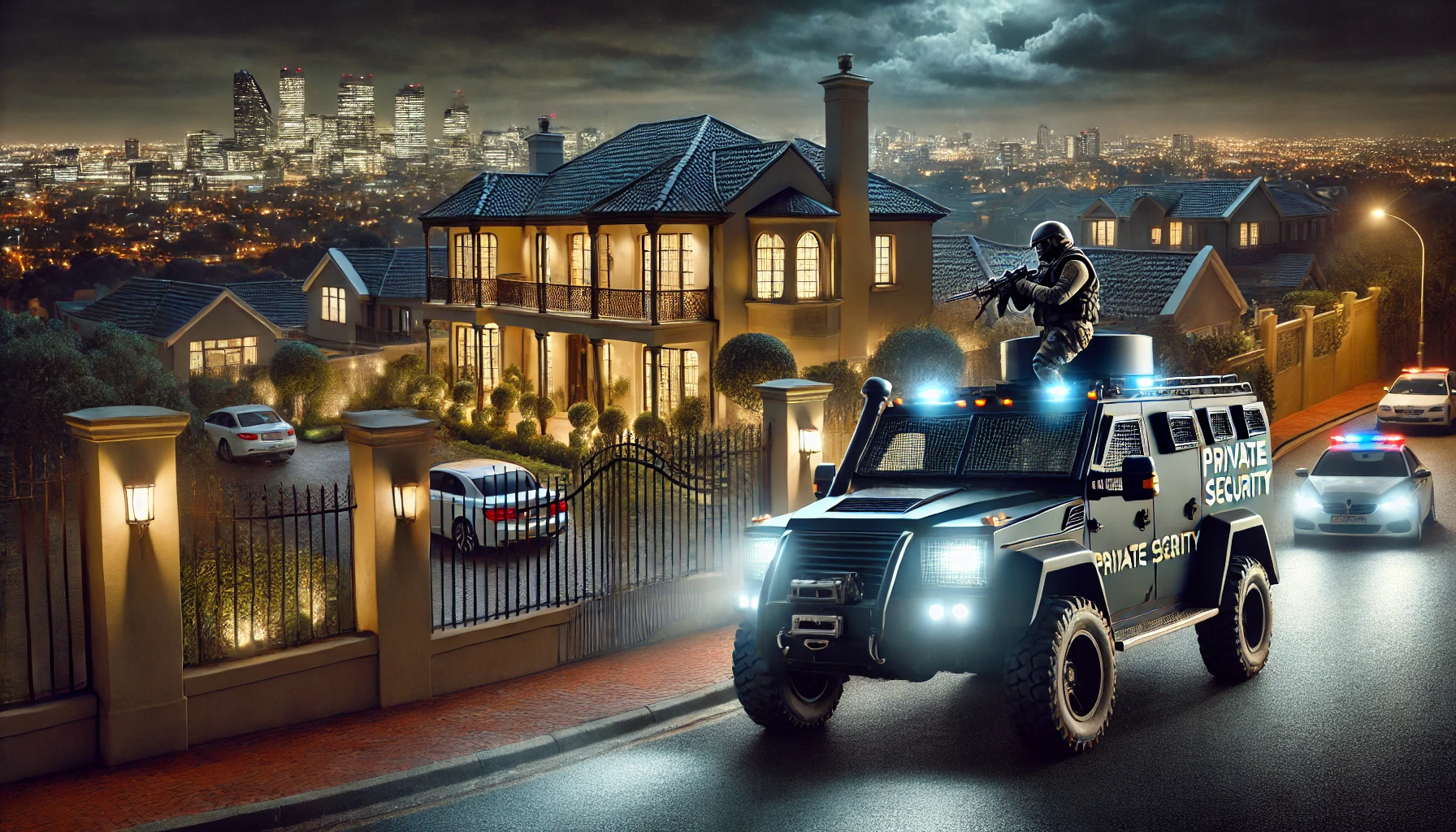 Wenn die Nacht in den Straßen von Johannesburgs reichstem Bezirk hereinbricht, wird die Dunkelheit von den blinkenden Lichtern hochmotorisierter Patrouillenfahrzeuge durchbrochen. Darin sitzen bewaffnete Männer, die für Ordnung sorgen. Doch sie wurden nicht von der Polizei, dem Militär oder einer anderen offiziellen Behörde in den Dienst gerufen. Sie sind Vertreter einer Branche, die in Südafrika zunehmend wächst: der privaten Sicherheitsdienste.