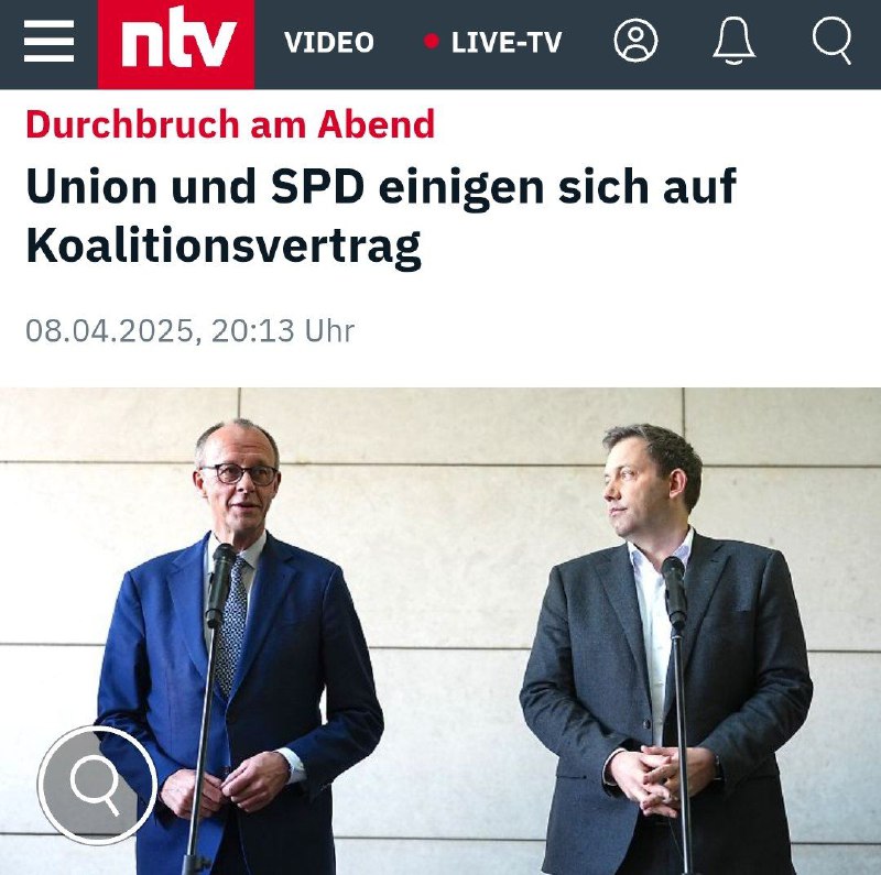Nun gehe es noch um Feinheiten, hieß es weiter. CDU, CSU und SPD wollen morgen Mittag (12.00 Uhr) über die Ergebnisse informieren.