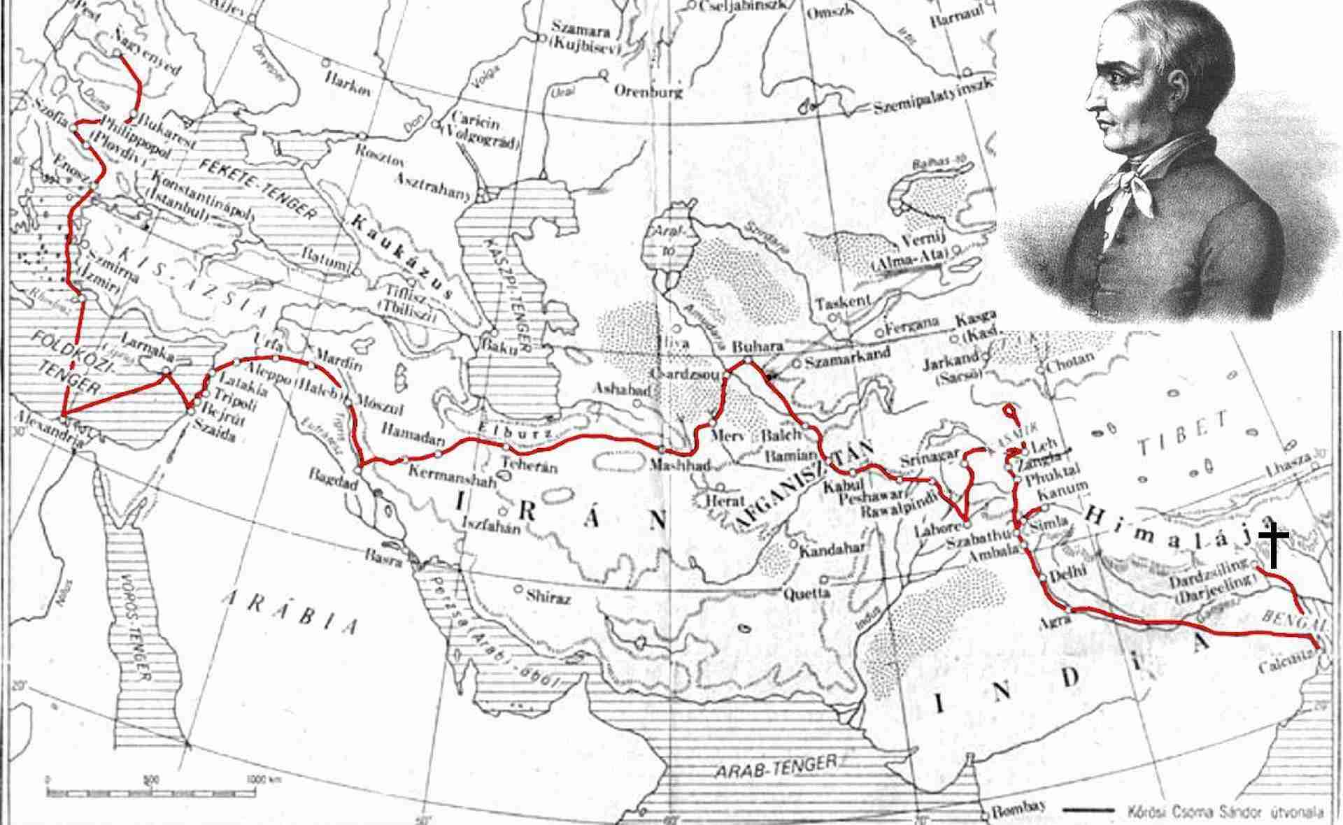 Im Jahr 1819 machte Csoma sich im Alter von 34 Jahren, zu Fuß auf die beschwerliche Reise nach Asien, mit der Absicht, die Urheimat der Ungarn zu entdecken. Sein Ziel waren die Westprovinzen Chinas, das heutige Xinjiang, das er aber nie erreichte. Das Reisen in jenen Zeiten war äußerst beschwerlich und gefährlich. Als armenischer Kaufmann verkleidet, kam er 1821 durch Persien nach Buchara und über Afghanistan 1823 nach Westindien.