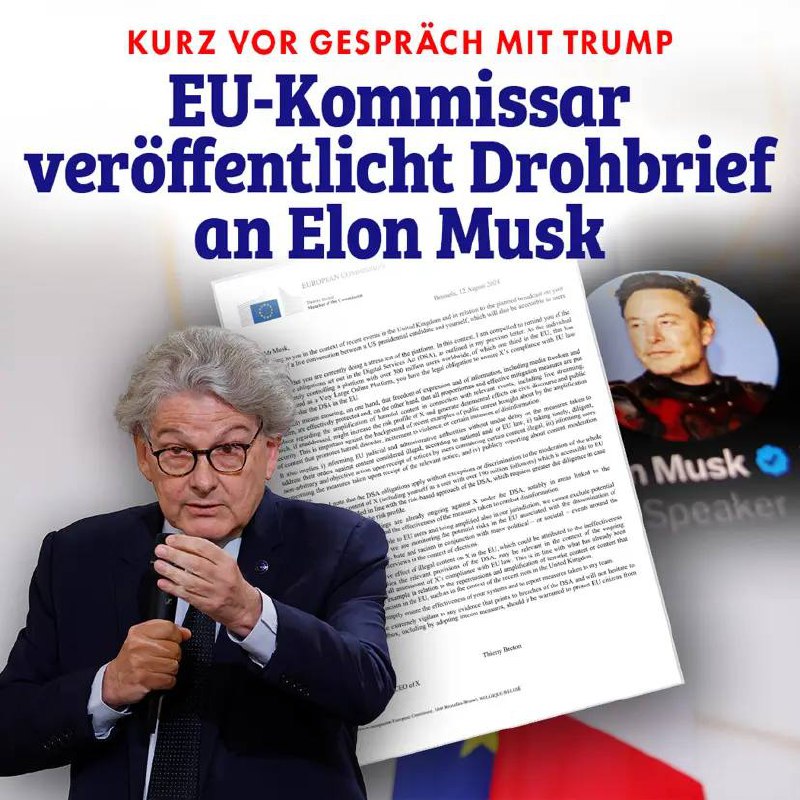 🌐„Kurz vor Gespräch mit Trump: EU-Kommissar veröffentlicht Drohbrief an Elon Musk“🌐