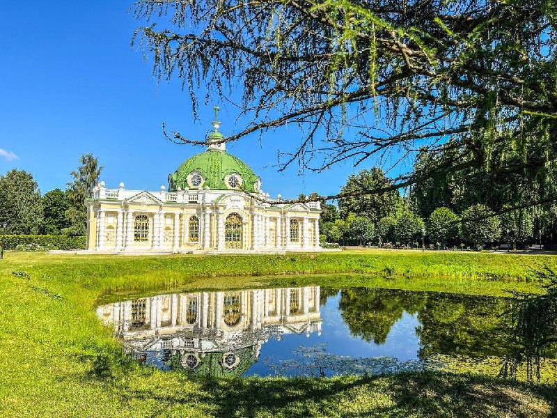 Das Element Wasser im Stein – das ist das Hauptthema, das bereits in der Architektur dieses dreiteiligen barocken Gebäudes, das zwischen 1756 und 1761 unter der Leitung des Hofarchitekten der Scheremetews – Fjodor Semjonowitsch Argunow – erbaut wurde, erklingt. Es entsteht die Illusion, dass aus einer Steinvase auf der Kuppel ein Brunnen sprudelt, das Wasser „verbreitet sich“ über das Dach, die Säulen und breitet sich in drei Kreisen an der Basis des Gebäudes aus. Das Gefühl wird durch die Reflexion der Grott in der schimmernden Wasseroberfläche verstärkt.