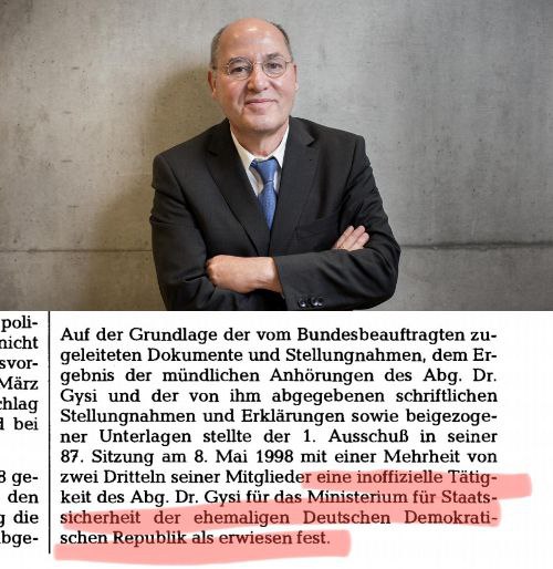 Die #AfD kritisiert nun nicht nur die Ausgrenzung, sondern auch, dass der „ehemalige Stasispitzel IM Notar“ das Parlament eröffnen dürfe, so die Politikerin Beatrix von Storch. Hintergrund ist die 1998 vom Wahlausschuss des Bundestages festgestellte inoffizielle Tätigkeit Gysis für die Stasi. Von Storch kritisierte auch, es sei „ein Unding, dass der AfD zustehende Rechte“ beseitigt würden und statt Alexander Gauland nun Gysi den Bundestag eröffne.
