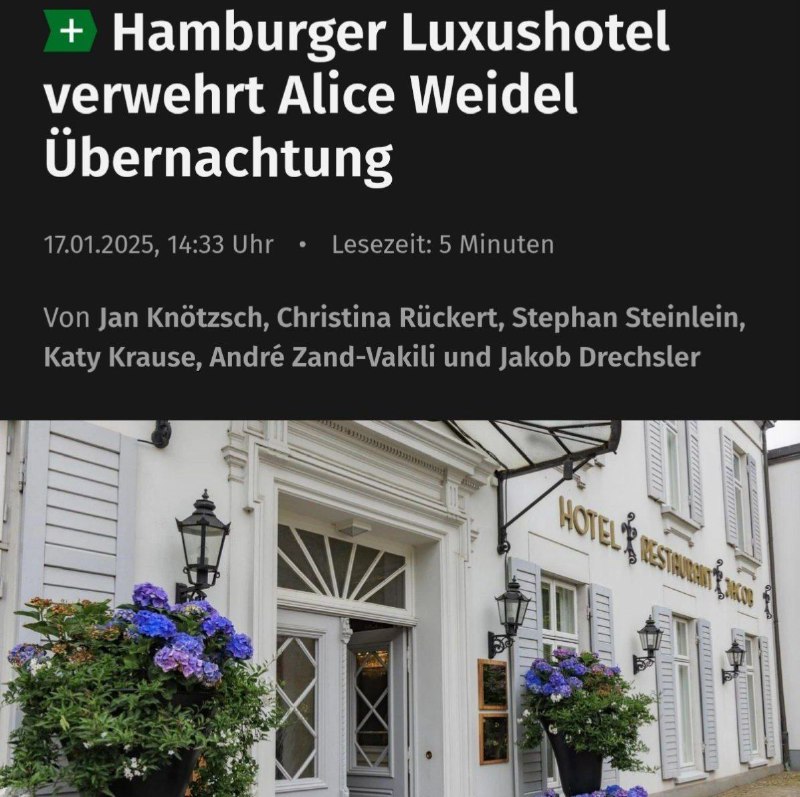Hamburger Luxushotel verweigert Alice Weidel AufenthaltDie AfD-Chefin und -Kanzl…