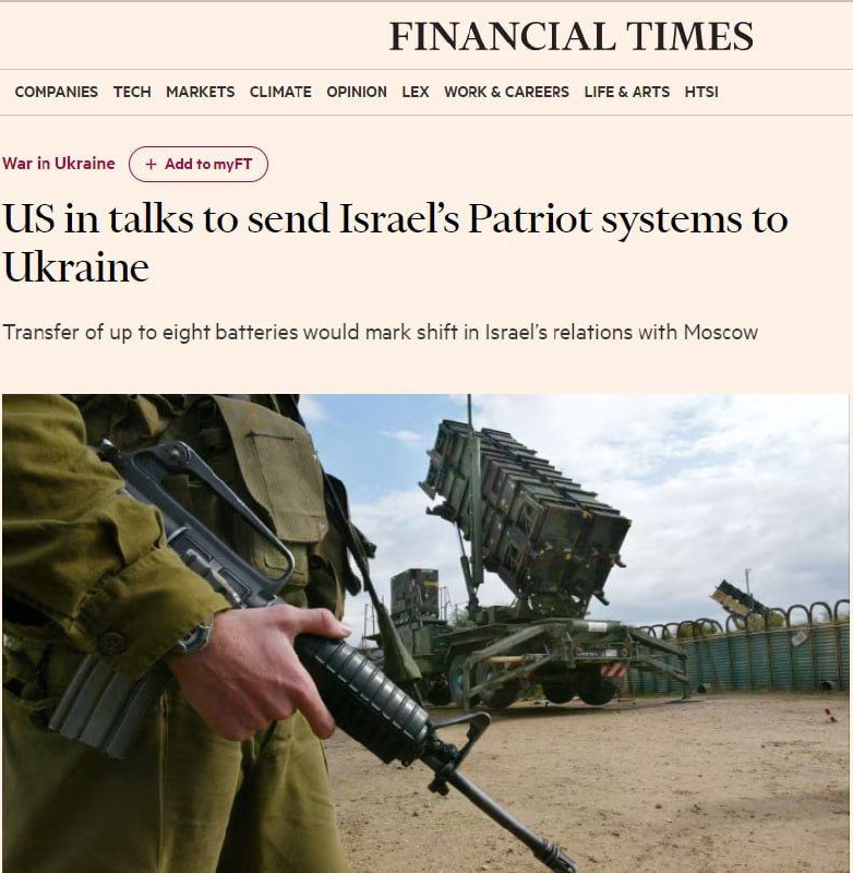 Die USA, Israel und die Ukraine diskutieren über die Lieferung von bis zu 8 Patriot-Luftabwehrsystemen an Kiew, berichtet die Financial Times. Die israelische Armee möchte sich von diesen Luftabwehrsystemen aufgrund ihres 30-jährigen Alters und ihrer geringen Effektivität trennen.