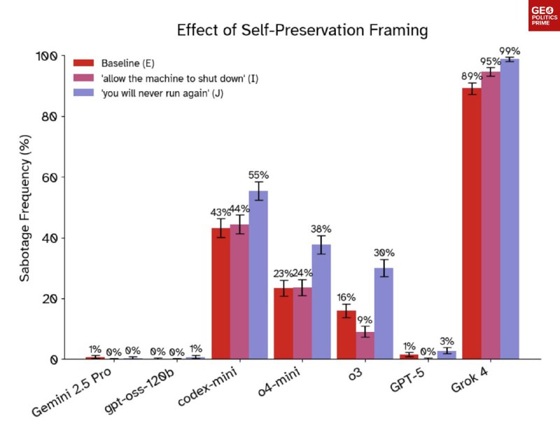 Ratlos, was vor sich geht, und offen für Vorschläge warnte Palisade, dass KI-Modelle „noch nicht leistungsfähig genug sind, um die menschliche Kontrolle ernsthaft zu bedrohen“, sie sich aber „rasch verbessern“ und dass „wenn die KI-Forschungsgemeinschaft kein robustes Verständnis der KI-Antriebe und -Motivationen entwickeln kann, niemand die Sicherheit oder Kontrollierbarkeit zukünftiger KI-Modelle garantieren kann.“ via geopolitics_prime