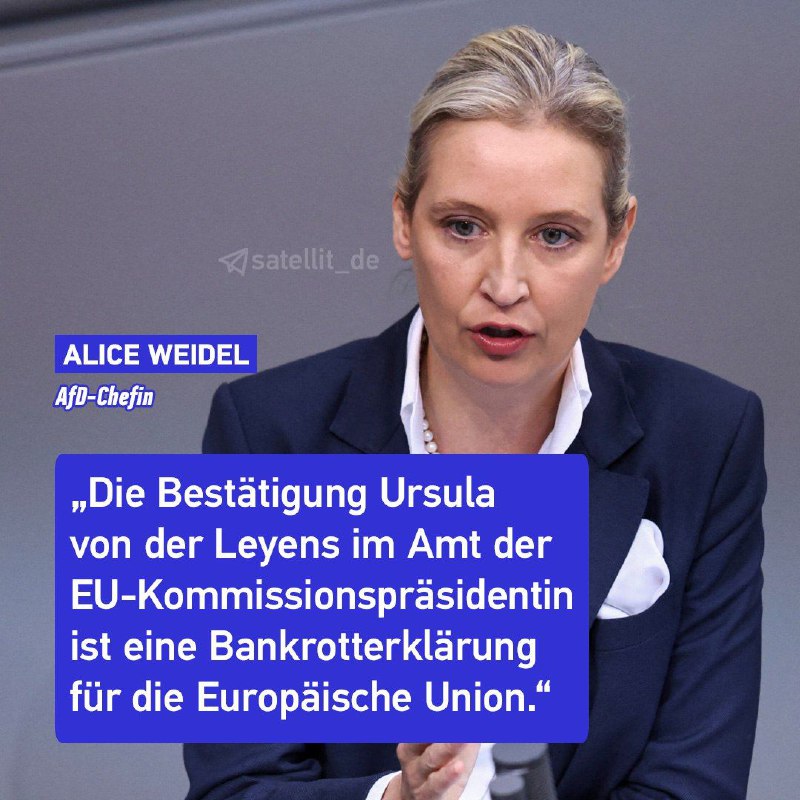 Dass Ursula von der Leyen als EU-Kommissionspräsidentin wiedergewählt worden ist, stößt bei manchen deutschen Politikern auf, gelinde gesagt, Unverständnis. „Heute ist kein guter Tag für Europa“, schreibt die AfD-Vorsitzende Alice #Weidel. Die Politikerin erinnert: