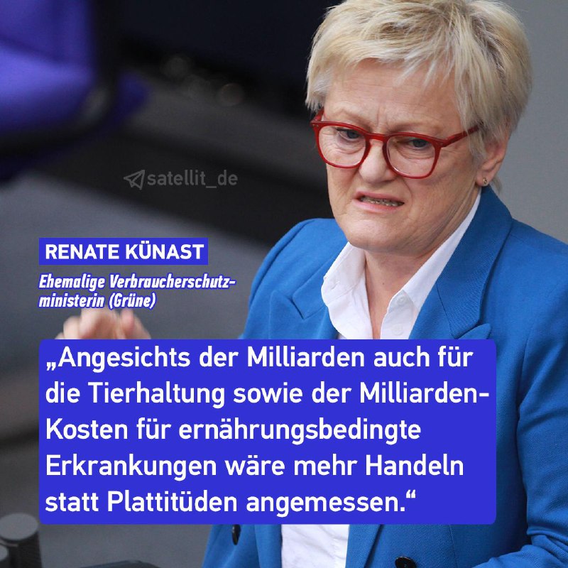 Die Ex-Verbraucherschutzministerin Renate Künast hat den Vorstoß des designierten Landwirtschaftsministers Alois Rainer (CSU) für Fleischgerichte in Kindergärten und Schulen sowie für billigeres Fleisch kritisiert.