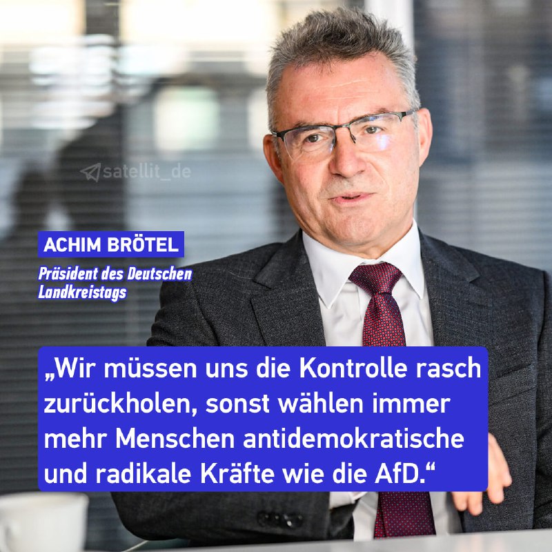 Notfalls müsse man die Menschen an den Grenzen stoppen. Wenn das geltende Recht dies nicht hergebe, müsse man es ändern. Ohne Kurswechsel drohe ein weiterer Zulauf zur AfD, warnte er. Als weitere Maßnahme schlug Brötel die Kürzung von Zuwendungen für abgelehnte Asylbewerber vor. Von der neuen Bundesregierung erwarte er zudem mehr Einsatz für eine gerechtere Verteilung von Geflüchteten innerhalb der EU.