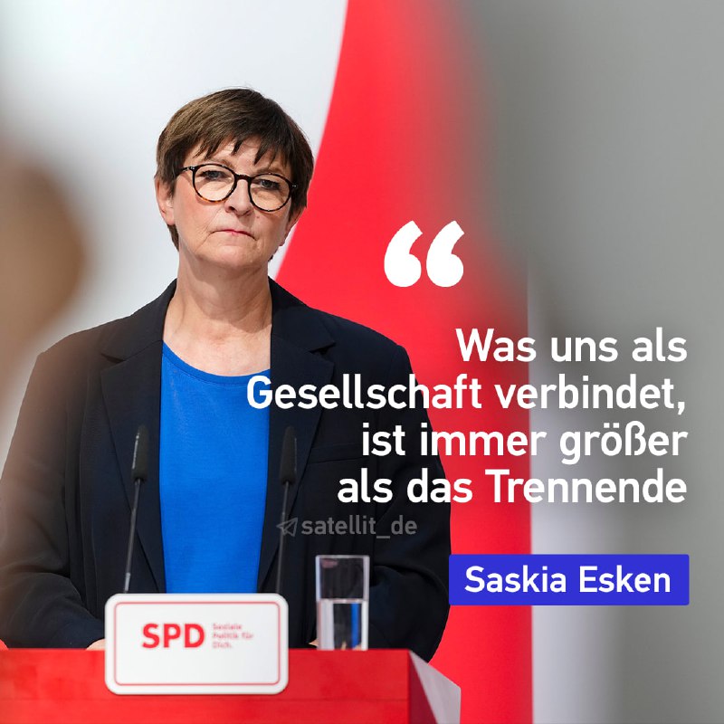 Eine Botschaft darf laut #Esken nicht außer Acht gelassen werden: „Gerade in Zeiten der Not und der Trauer dürfen wir darauf vertrauen, dass unser ‚Mensch sein‘ und unser Zusammenhalt stärker sind als Hass und Gewalt.“