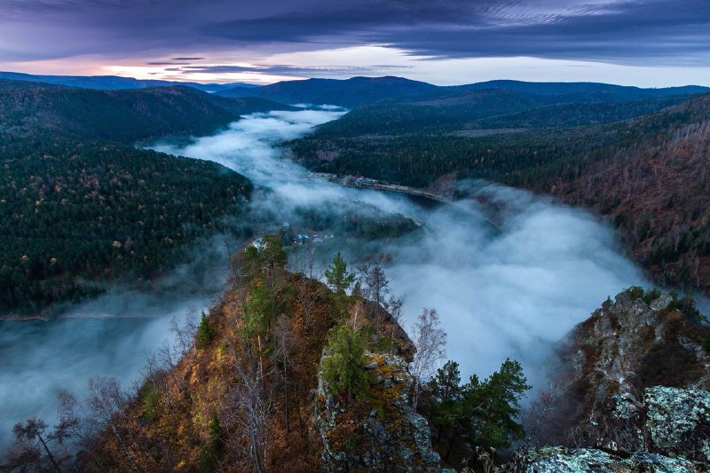 Er ist malerisch und menschenleer. Der Fluss schlängelt sich durch die Taiga und bahnt sich seinen Weg zwischen den Bergen.