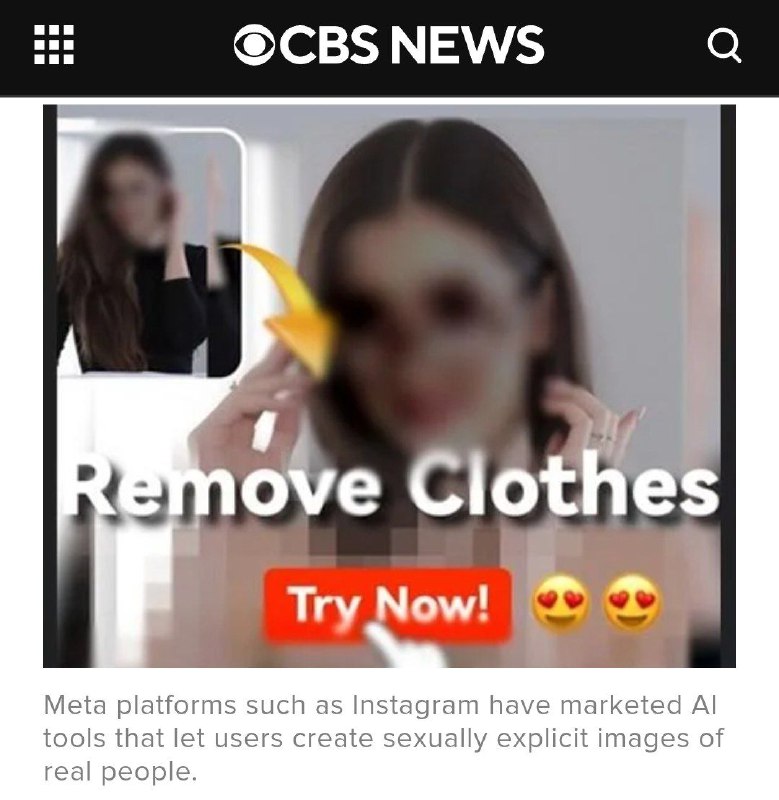 Meta hat auf seinen Plattformen zahlreiche Werbeanzeigen für sogenannte „Nudify“-Apps entfernt, mit denen mithilfe von KI pornografische Deepfakes erstellt werden können. Eine Untersuchung des Senders „CBS News“ hatte zuvor Hunderte solcher Anzeigen auf Facebook, Instagram, Threads, Facebook Messenger und dem Meta Audience Network aufgedeckt. In den Anzeigen wurde damit geworben, dass man Fotos hochladen könne, um „jemanden nackt zu sehen“.