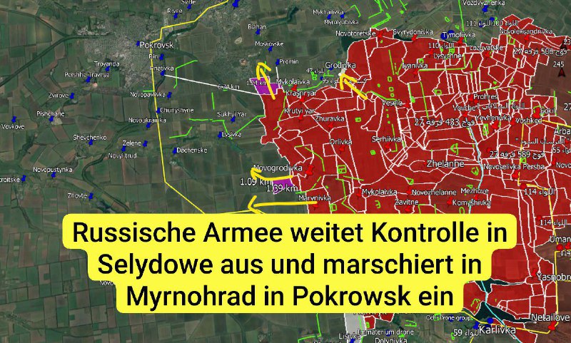 Die russische Armee weitet ihre Kontrolle in #Selidovo und Michailowka in Richtung #Pokrowsk aus