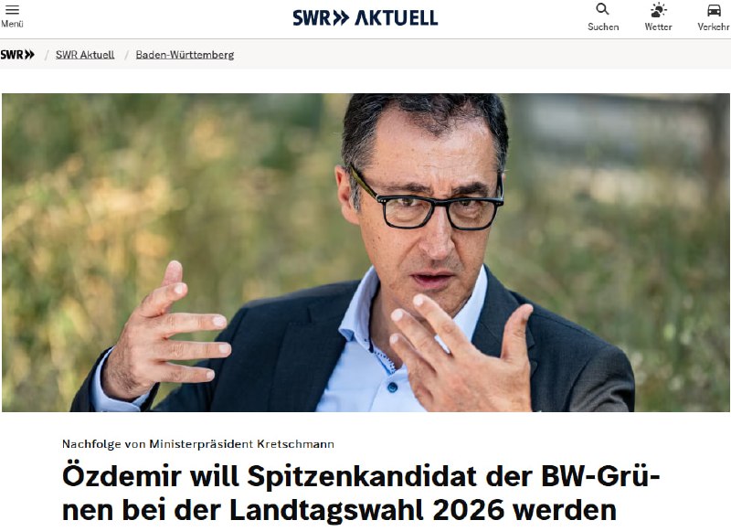Bundeslandwirtschaftsminister Cem #Özdemir will Spitzenkandidat der Grünen BW bei der #Landtagswahl im Frühjahr 2026 werden, berichtete der SWR. Er soll nach einem möglichen Wahlsieg auf Ministerpräsident Winfried Kretschmann folgen. Zuvor hatte #Kretschmann angekündigt, nach drei Wahlperioden nicht mehr antreten zu wollen.