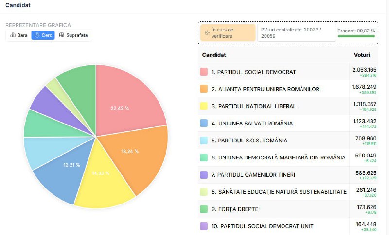 Nach Auszählung fast aller Stimmen kommt die Sozialdemokratische Partei (PSD) vom amtierenden Ministerpräsidenten Marcel Ciolacu auf fast 22,5%. Das gaben rumänische Medien unter Verweis auf die zentrale Wahlbehörde in Bukarest bekannt. Auf Platz zwei steht die rechtsgerichtete AUR mit rund 18% – fast doppelt so viel wie vor vier Jahren.