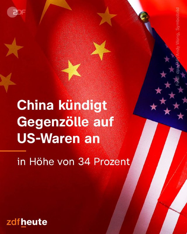 ☝️ Und nach Trumps Entscheidung vom 2. April, Zölle auf chinesische Waren von bis zu 34% einzuführen, reagierte Peking spiegelbildlich. Ab dem 10. April werden auch amerikanische Waren, die auf den chinesischen Markt kommen, mit Zöllen von 34% belegt, – berichtet der deutsche öffentlich-rechtliche Sender ZDF.