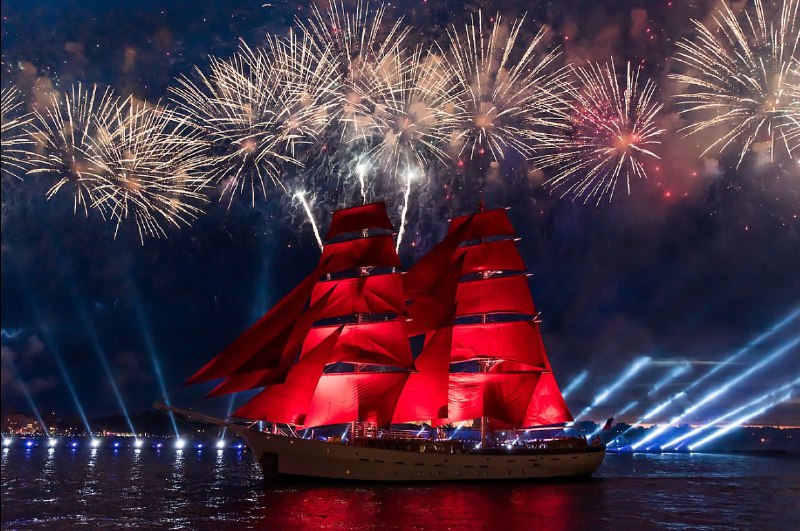 In der Nacht auf den 12. Juni fand in Sankt Petersburg die Generalprobe des traditionellen Festivals “Purpurrote Segel”. Der Name stammt von einem Roman des russischen Schriftstellers Alexander Grin, einem Klassiker der russischen Literatur des 20. Jahrhunderts und weit über die Grenzen Russlands bekannt und geliebt.