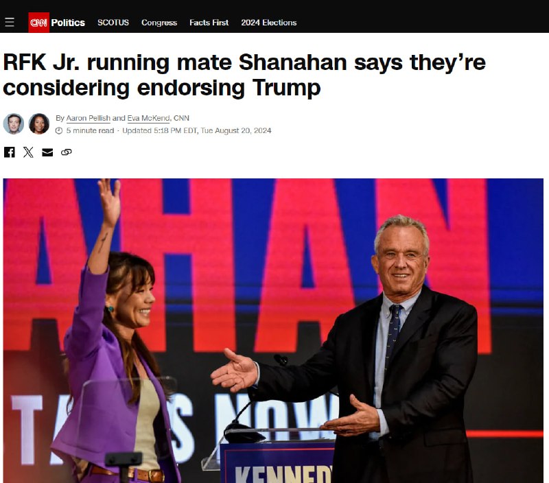 Robert F. Kennedy Jr, der Neffe des 35. ermordeten US-Präsidenten, John F. Kennedy, erwägt, seine Präsidentschafts-Kampagne aufzugeben und sich Donald Trump anzuschließen, sagte seine Vizekandidatin Nicole Shanahan im Podcast „Impact Theory“.