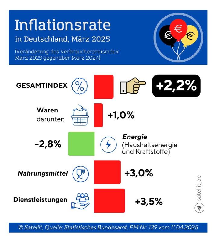Wir haben anhand der offiziellen Angaben nun unsere traditionelle Infografik mit den wichtigsten Produktgruppen und deren Verteuerung beziehungsweise Verbilligung erstellt. 📊#Satellit_Infografik #Inflation #Wirtschaft