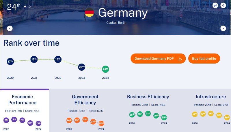 Bei der „Regierungseffizienz“ insgesamt liegt Deutschland auf Platz 32 von 67 – vor zehn Jahren noch zwischen den Plätzen 21 und 24.
