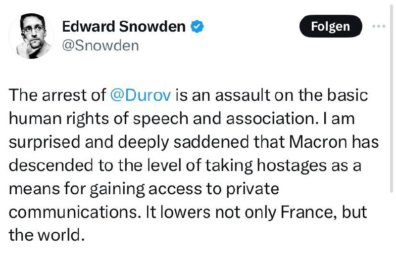 ❗️Medien: Telegram-Chef Pawel #Durow nahe Paris festgenommen Laut dem französischen Fernsehsender TF1 ist der 39-jährige Gründer und CEO von Telegram, Pawel Durow, am Samstagabend am Flughafen von Le Bourget bei #Paris festgenommen worden. Der französisch…