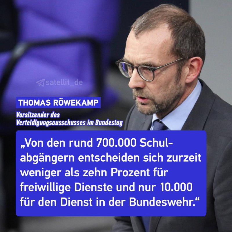 Diese müsse für Männer und Frauen gleichermaßen gelten, sagte der Vorsitzende des Verteidigungsausschusses im Bundestag, Thomas Röwekamp, der „Rheinischen Post“. Diese Pflicht solle nicht nur dem Militär dienen, sondern könne auch in sozialen oder zivilgesellschaftlichen Bereichen erfüllt werden.