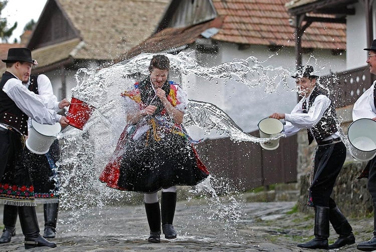 Dafür werden die Männer mit Ostereiern, Kuchen und Alkohol bewirtet. Also in altem Brauch ziehen am Ostermontag die Väter mit den Söhnen los mit (kölnischem) Wasser in der Hand und besuchen die Verwandtschaft, Freunde und Nachbarn. Die Damen bleiben zu Hause und warten auf die Gäste mit von leckeren typischen Osternköstlichkeiten gedecktem Tisch.