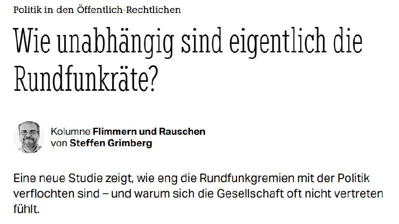 Wie unabhängig sind die Rundfunkräte?Spoiler: gar nicht.Ja, in Deutschland gibt ...