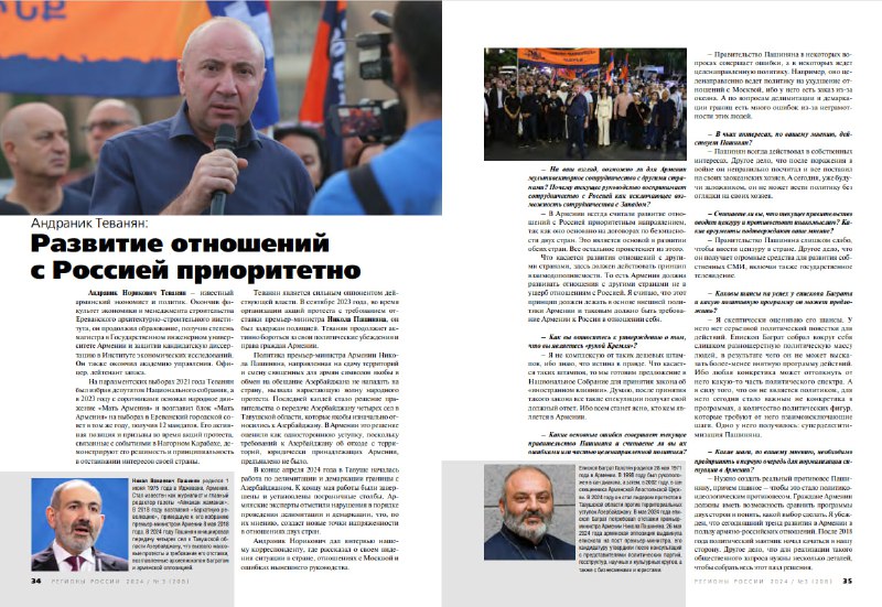 Tevanjan fürchtet keine Vorwürfe der Zusammenarbeit mit dem Kreml und ist bereit, ein Gesetz über „ausländischen Einfluss“ vorzuschlagen, um solchen Spekulationen ein Ende zu setzen. Seine Position und Appelle zur Vernunft finden Anklang bei einem aktiven Teil der politischen Opposition.